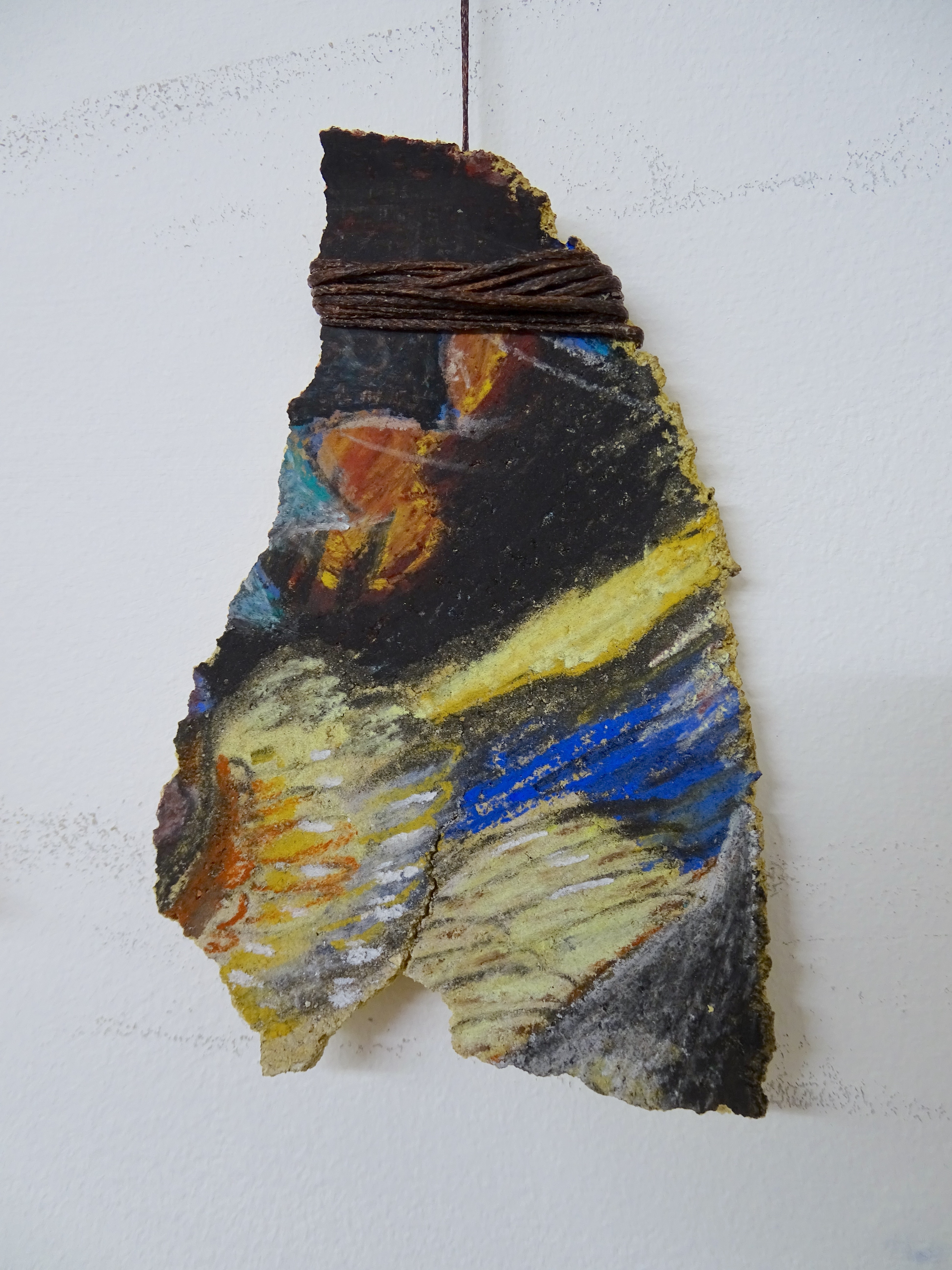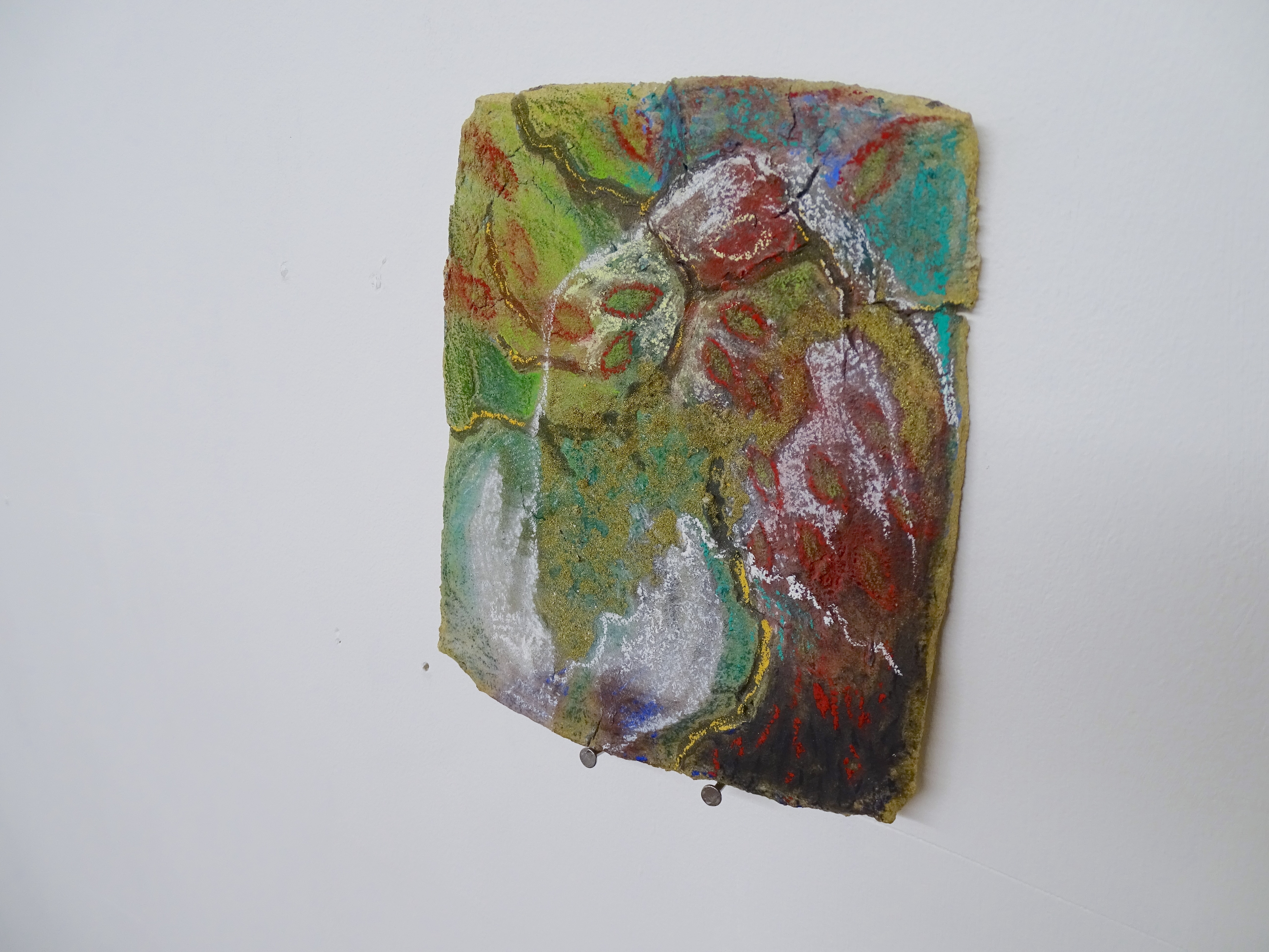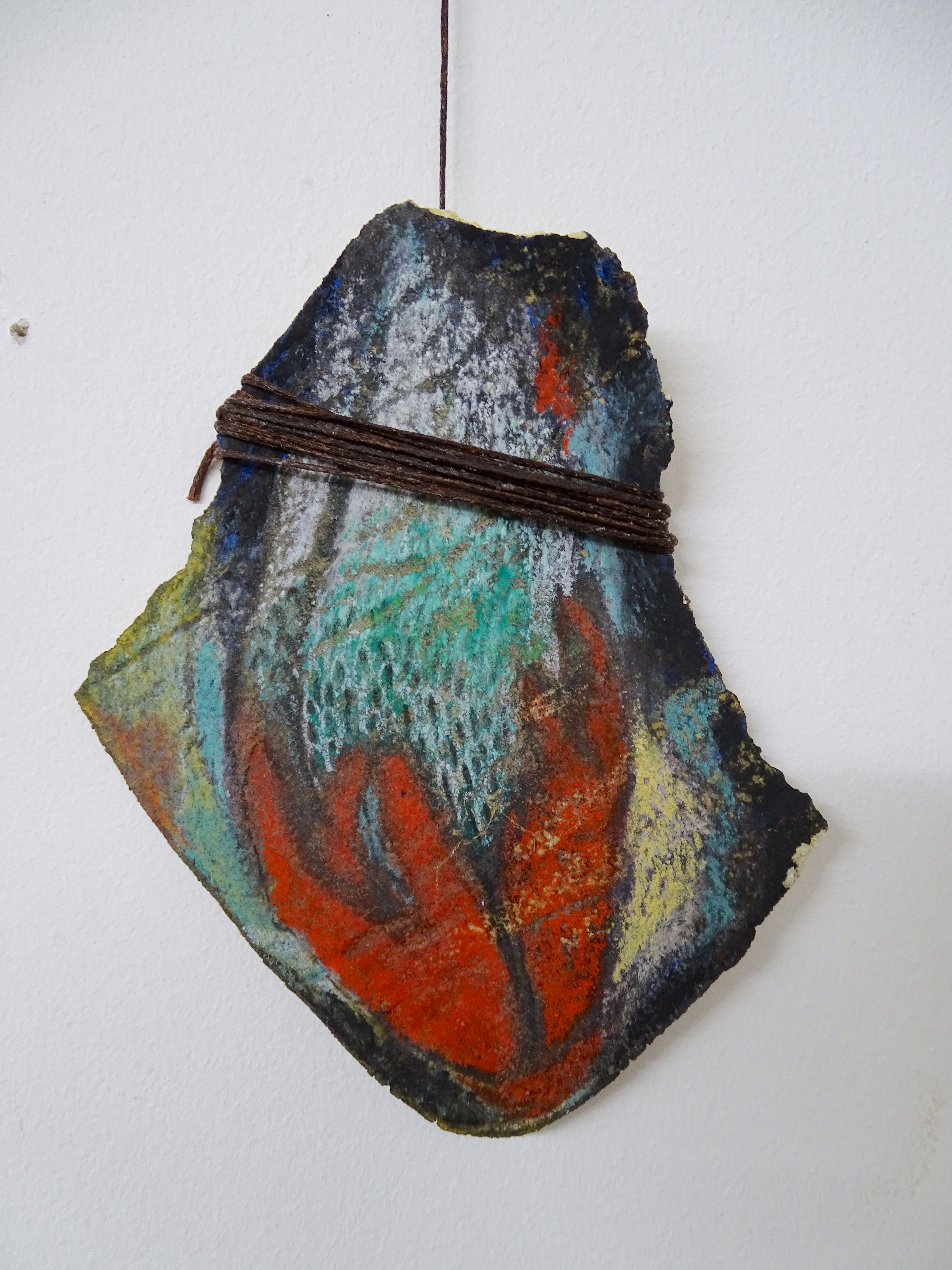 Material experiments: Eggshell, scoby, orange peel, chalk and pastel.