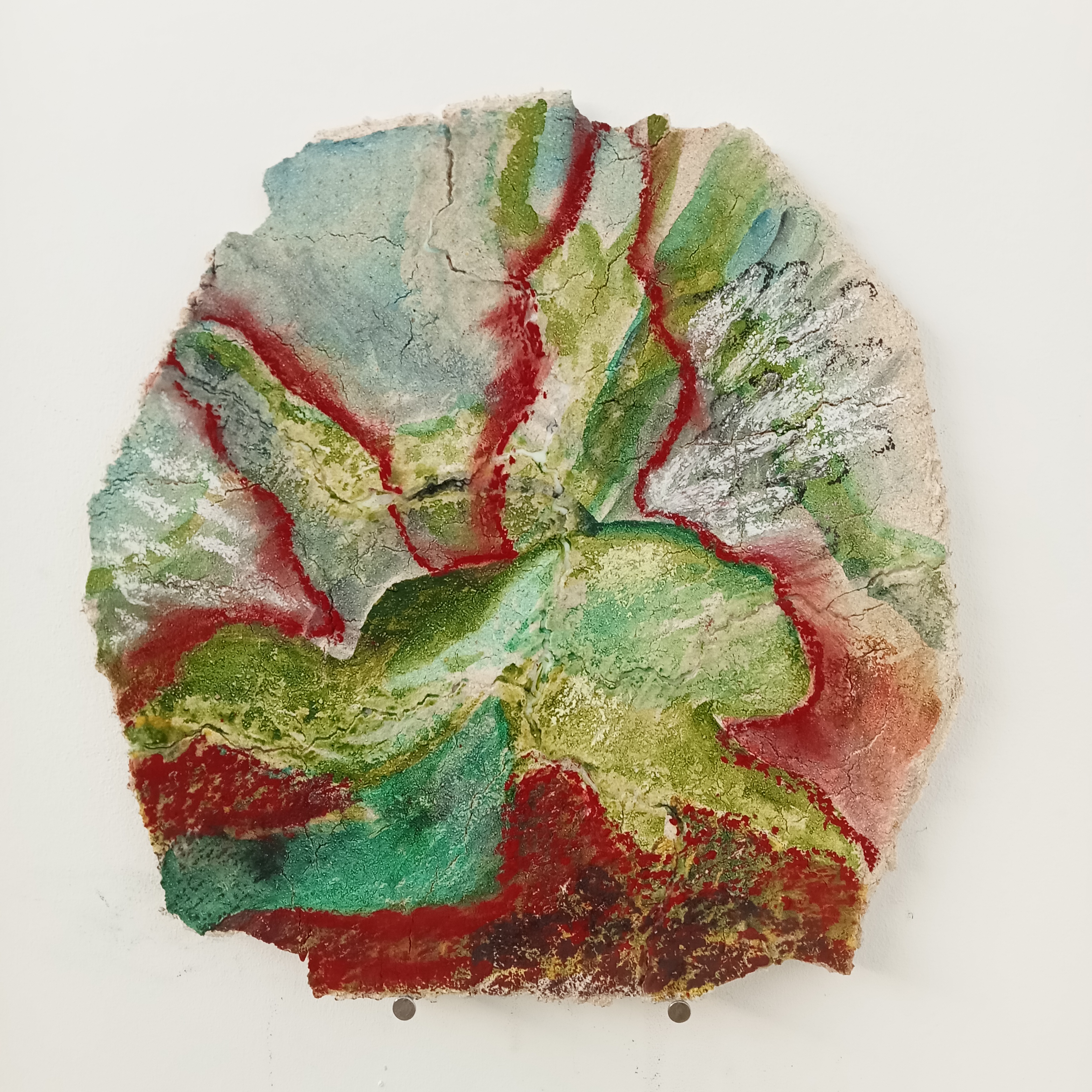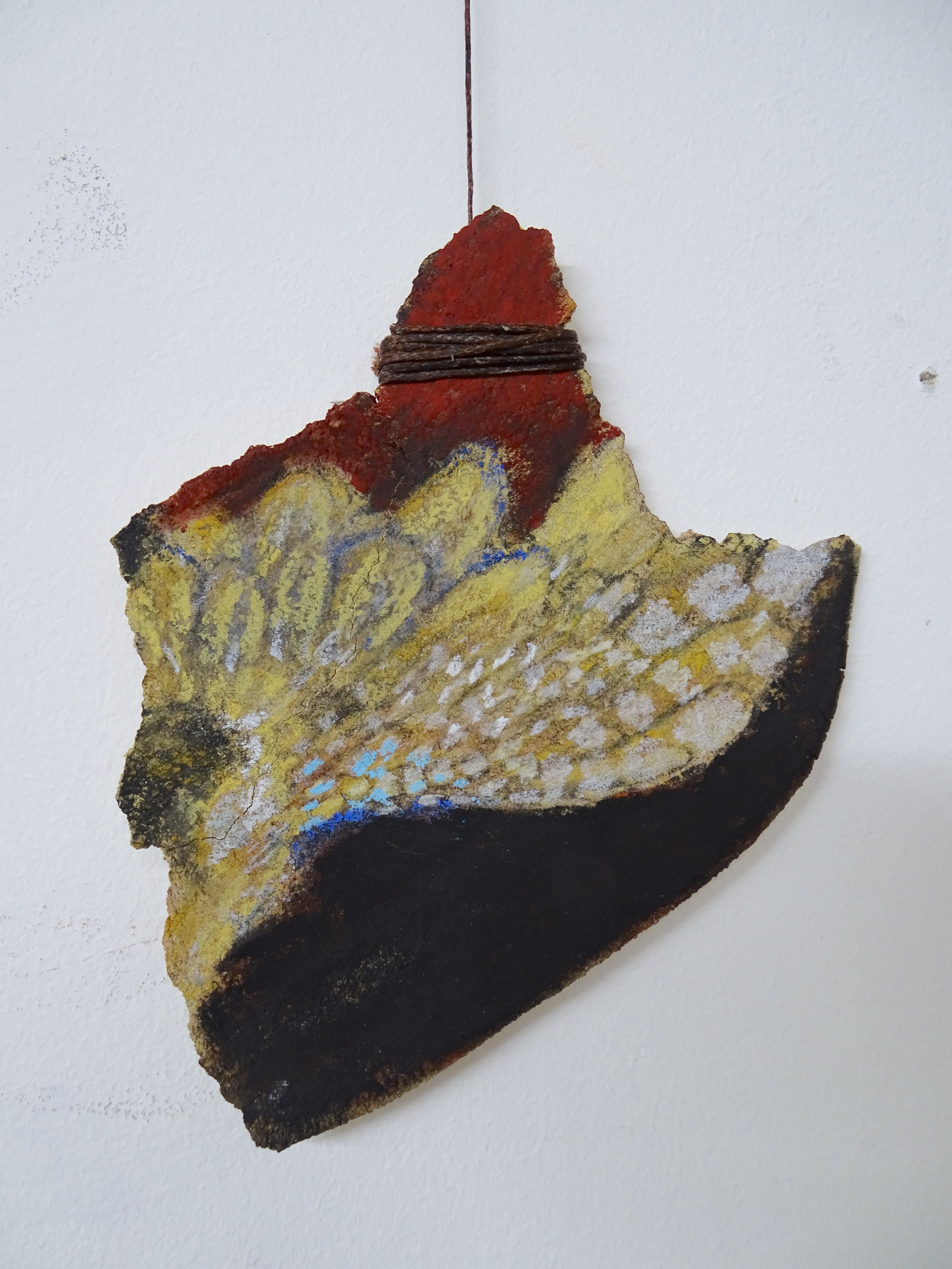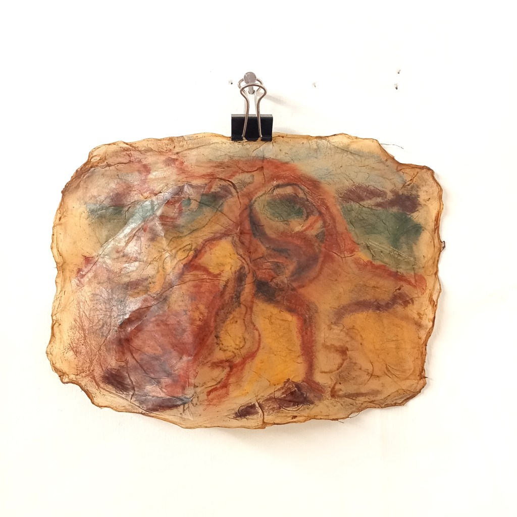 Material experiments: Eggshell, scoby, orange peel, chalk and pastel.