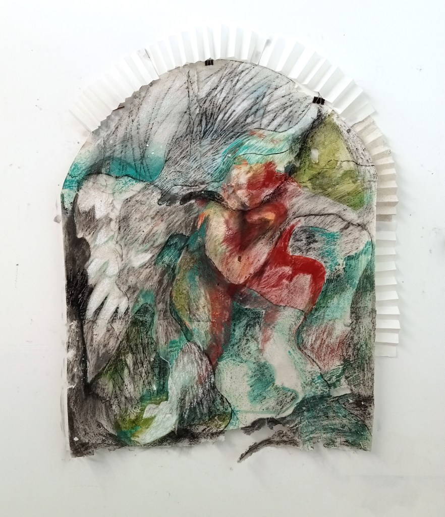 Material experiments: Recycled paper pulp, eggshell and pastel.