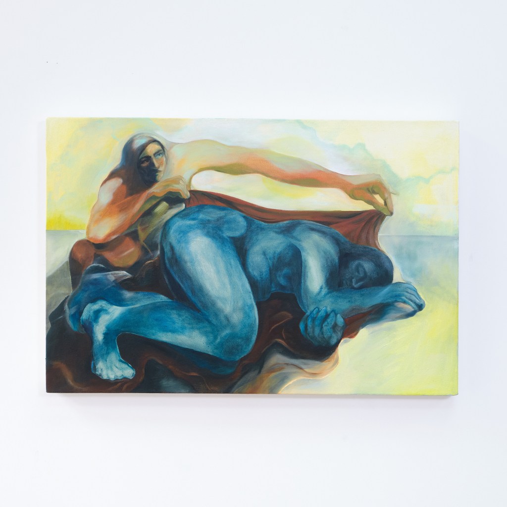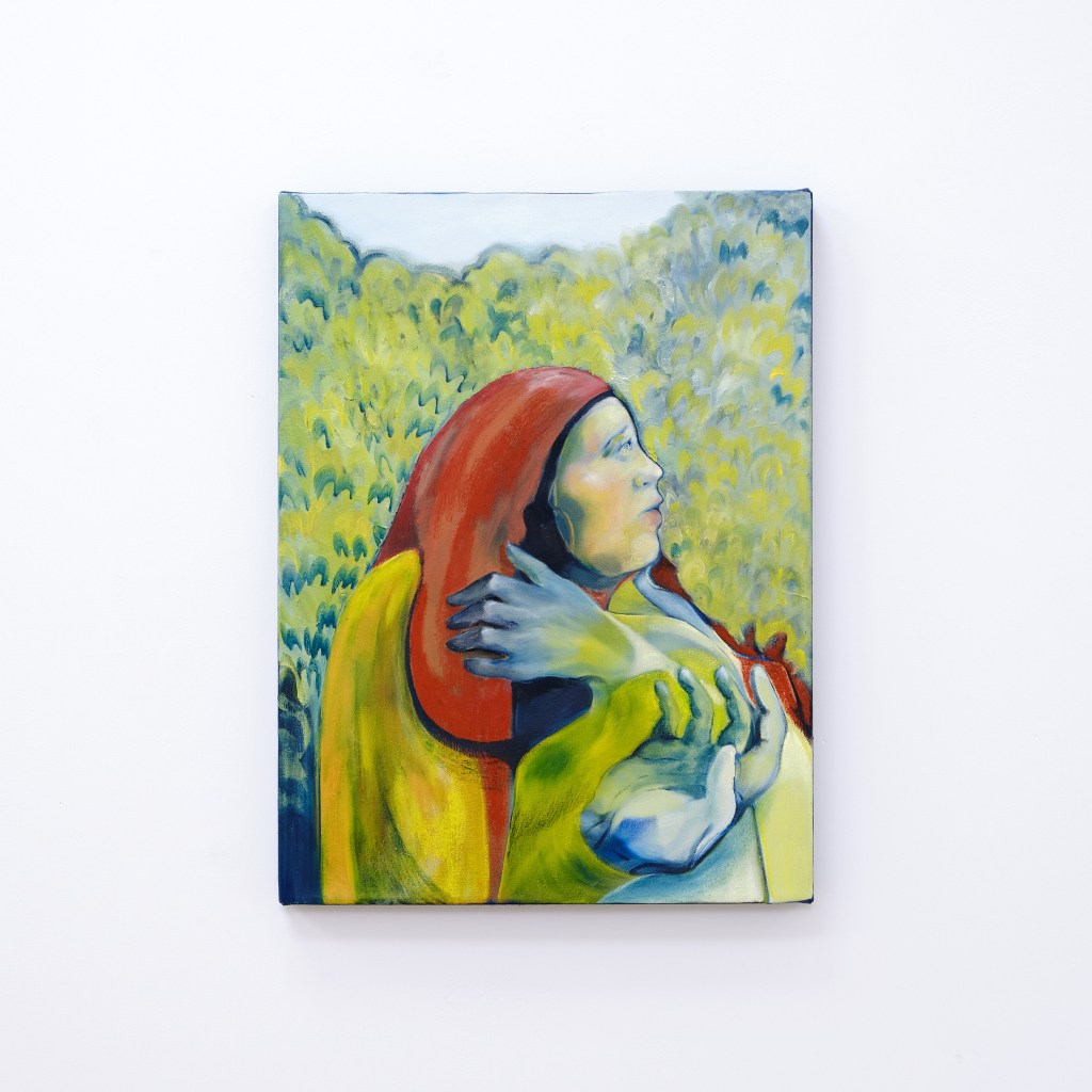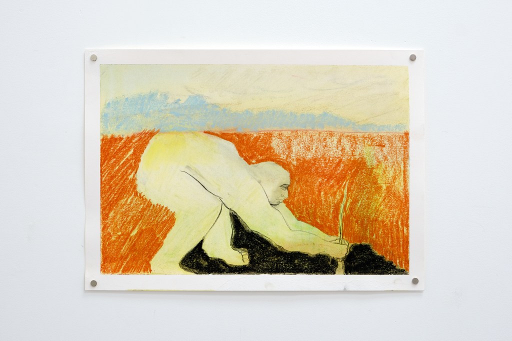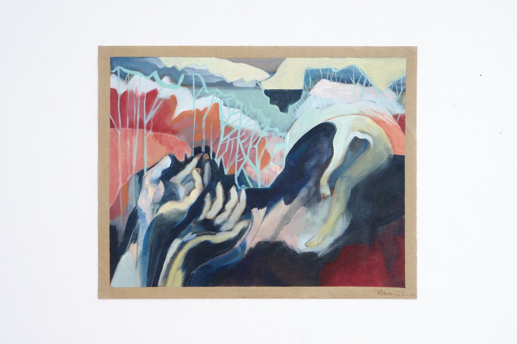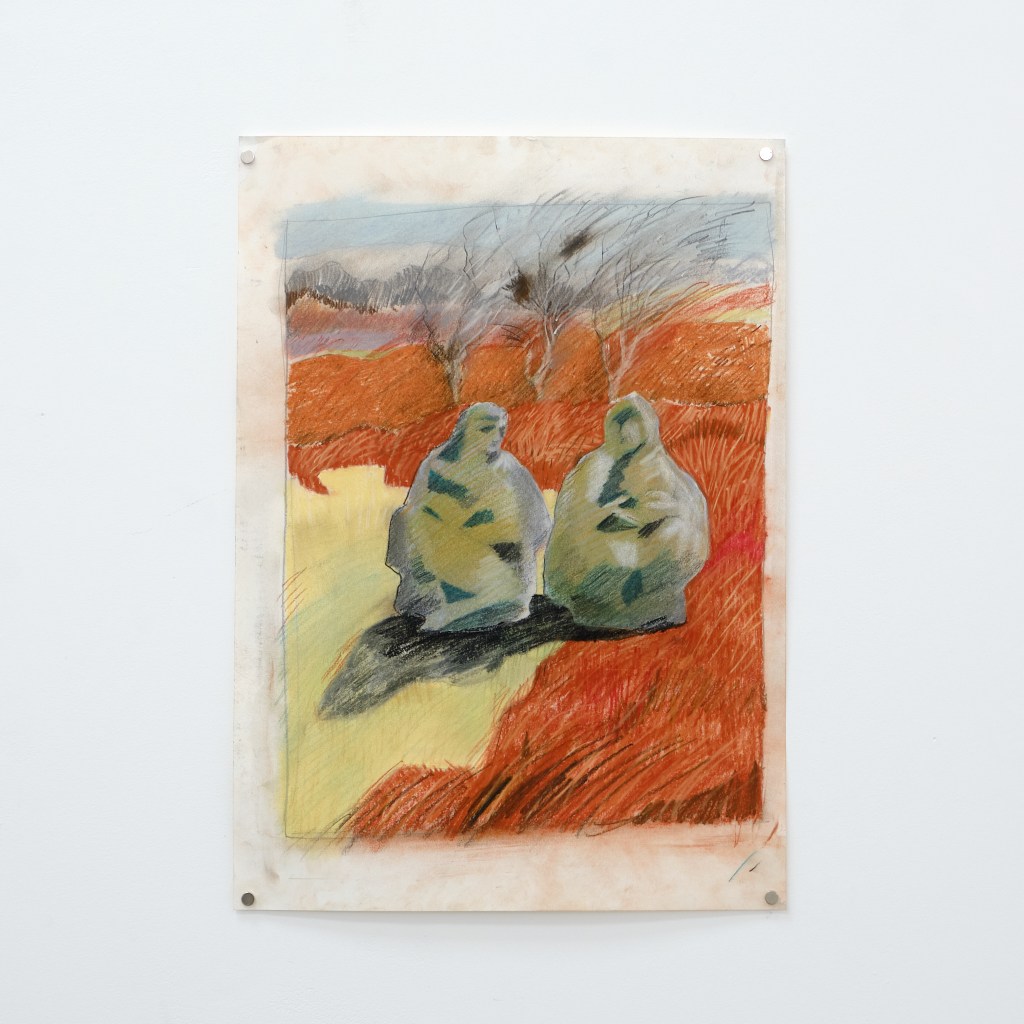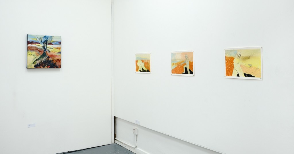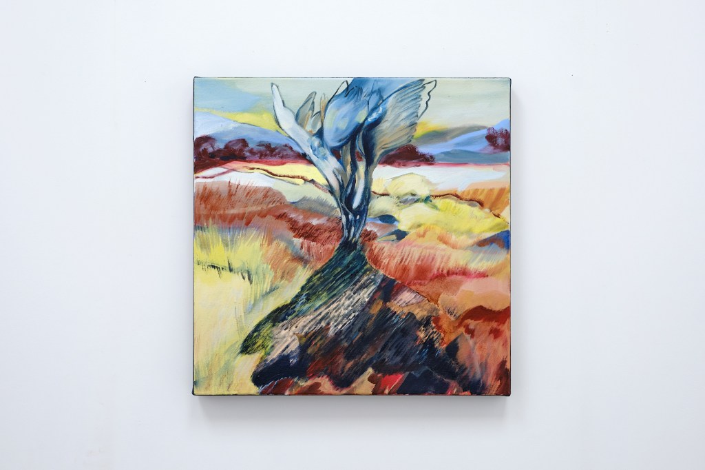 The ‘Place’ is a rare slice of ancient woodland. It has become a sanctuary, a bit of peace, a place to let things drop and fix your mind. The colours in these works, of lichen, young birch and oppressive bracken form figures; blurring fabricated lines between landscape and body, reminding us that we are part of and not separate from nature.