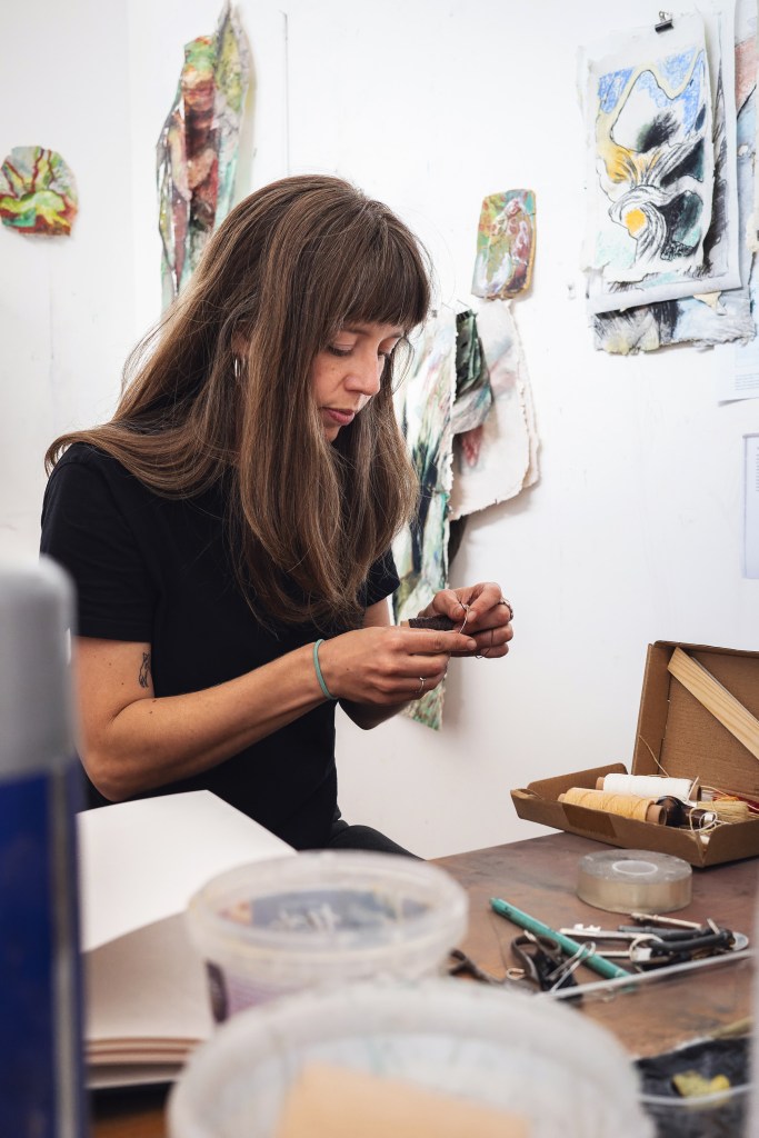 Material research and experimentation is a key aspect of Pippa’s practice. Using food, manufacturing and paper waste, she explores the concepts of domesticity, mending and consumption, whilst accepting the ephemerality that comes with generating works from pre-used matter.